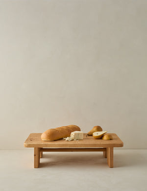 Elevate your next tabletop spread with this footed grazing board. The rustic design is handcrafted with pine, offering a versatile serving piece full of organic texture to set off any culinary display.