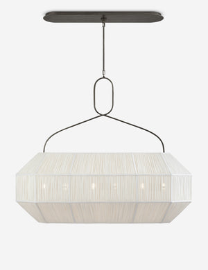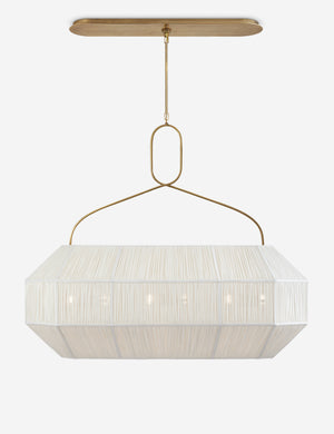 Kelly Wearstler possesses an intuitive eye for finding harmony through contrast, creating richly layered spaces and thoroughly refined elements for the home. The Forza pendant balances geometric structure with fluid lines for a statement overhead. With a gathered linen shade, this linear pendant light offers even illumination across dining spaces, kitchens, or living areas.