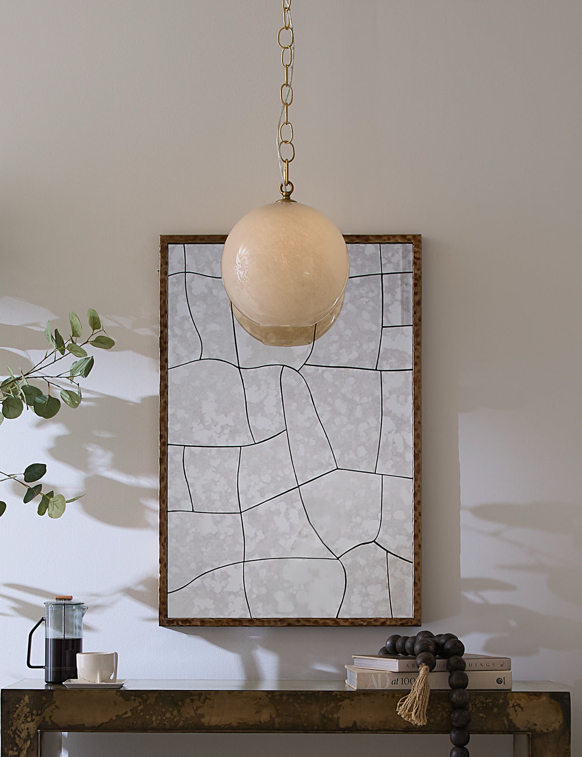 With its hand-blown glass shade and antique brass chain, the Franzi pendant brings effortless polish to cozy curations. The rounded silhouette and expressive glass offers soft contrast with sculptural appeal. We love this pendant light for cozy nooks, entryways, or tailored spaces.