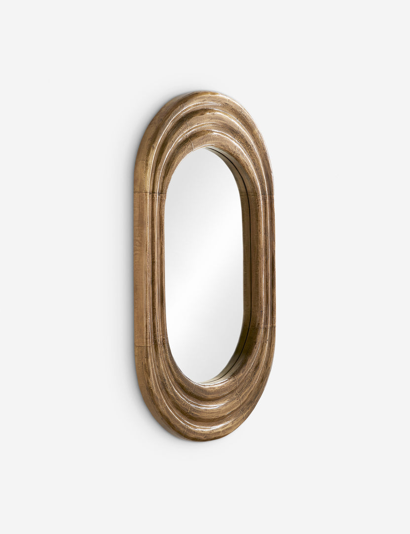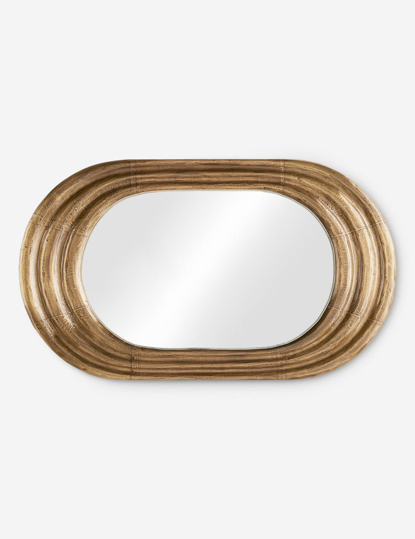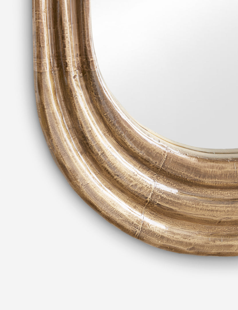 With its bold silhouette and burnished brass finish, the Georgina Mirror brings lasting character to your wall. Concentric curves ripple outward from the glass, drawing the eye with a sculptural depth. This striking accent mirror can be mounted vertically or horizontally, layering in texture with a touch of polish.