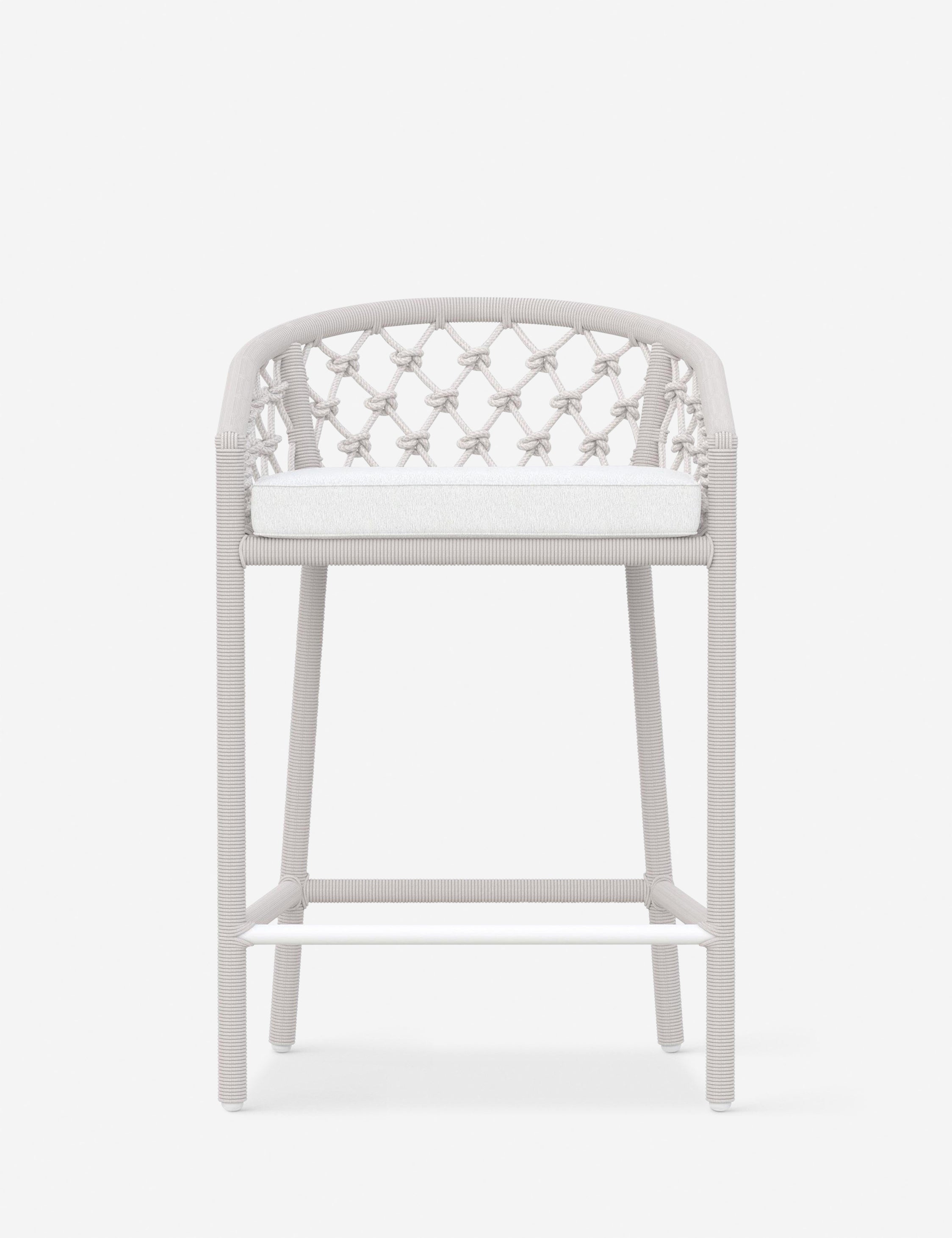 The Gibbs indoor/outdoor stool balances practical comfort with breezy sophistication. From the light but sturdy aluminum underneath to the all-weather rope and removable, performance fabric cushion, every element is designed to bring effortless elegance to indoor-outdoor living. This counter stool features an airy, rope-wrapped frame with hand-knotted detailing for a distinctive touch at an al fresco snack bar or patio grill.