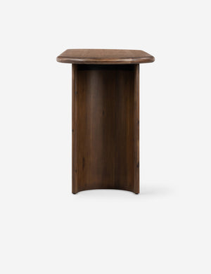 Clad in acacia, the soft lines of the Gilda console table are reflected in the curved legs, offering a sturdy design with a gently rounded profile that feels sculptural yet grounded. This wood console table is set to elevate your entryway or living room with the perfect touch of surface space.