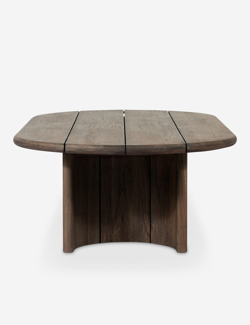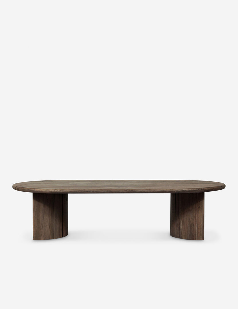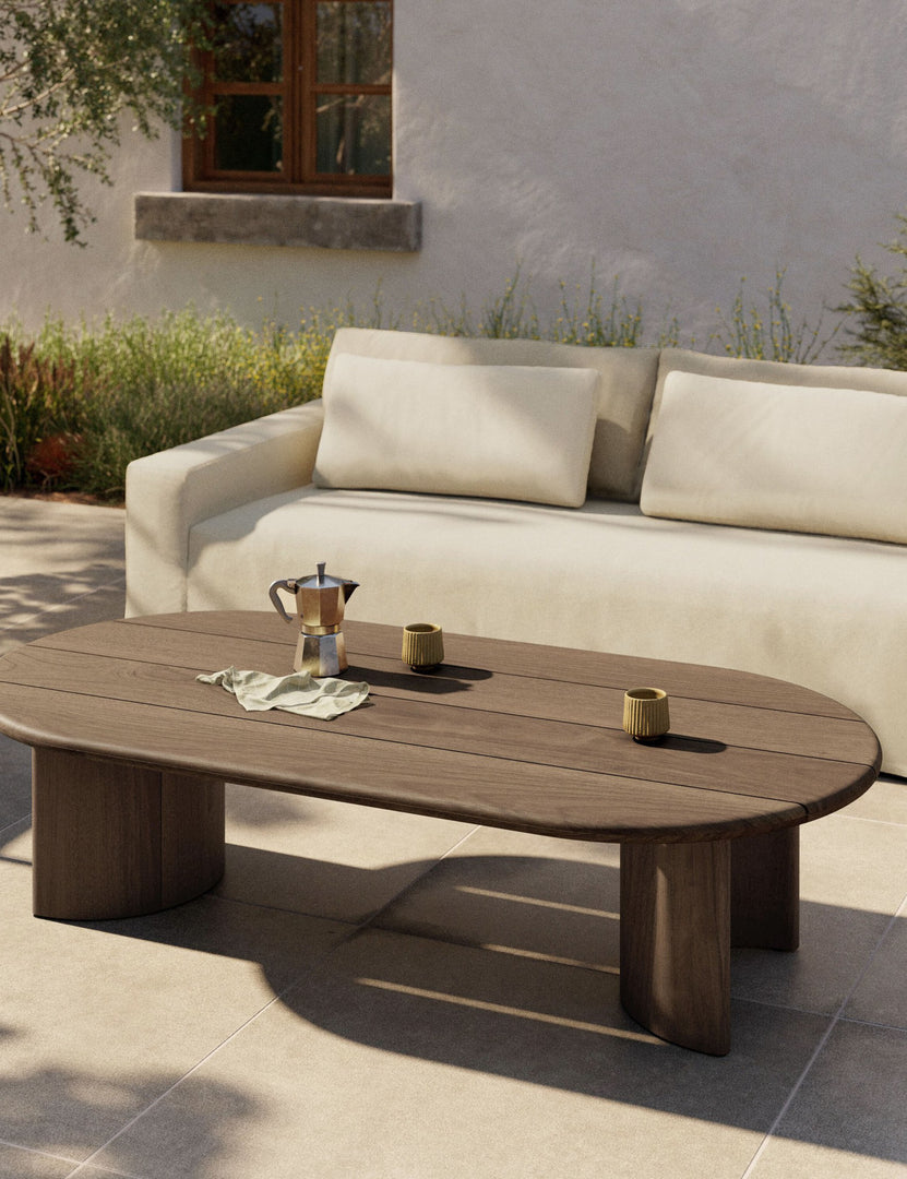 Fashioned entirely from FSC-ceritied teak, the delicate lines of our Gilda outdoor coffee table are reflected in the curved legs to offer a sturdy design with a softer profile—wide slats form the oval top, imbuing a rustic character. From patio to terrace, this oval coffee table is the perfect anchor for an outdoor social hour.