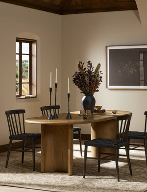 The soft lines of our Gilda dining table are reflected in the curved legs to offer a sturdy design with a gentle profile full of natural grain character. This solid wood design sets a timeless table for modern tastes.