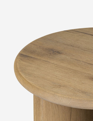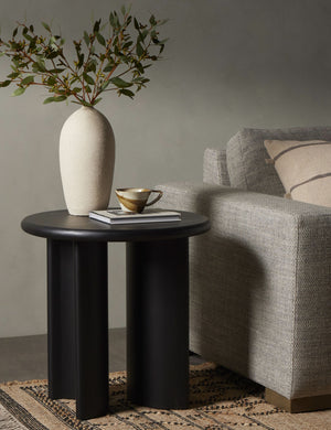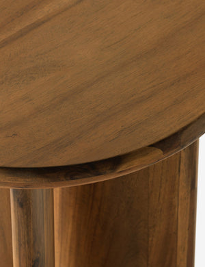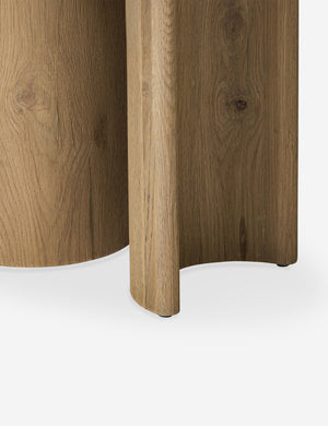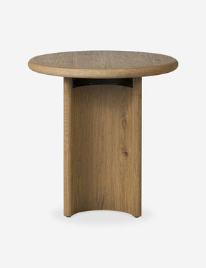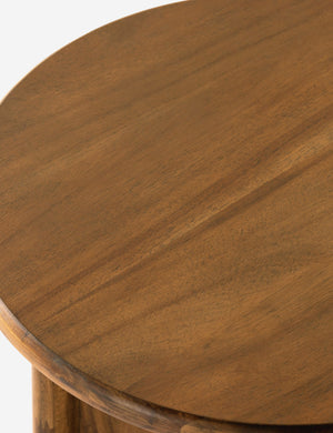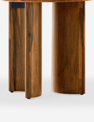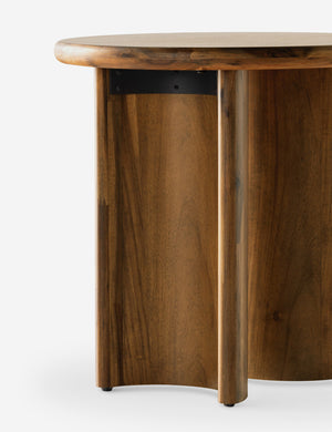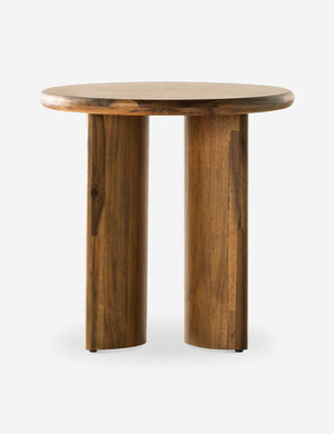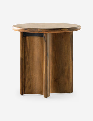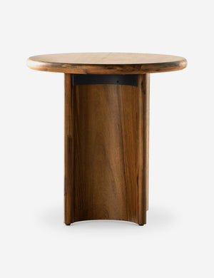 Clad in a thick acacia veneer, the delicate lines of this round side table are reflected in the curved legs to offer a sturdy design with a softer, rounded profile. We love this end table styled next to a clean-lined sofa or chair for a refining touch.