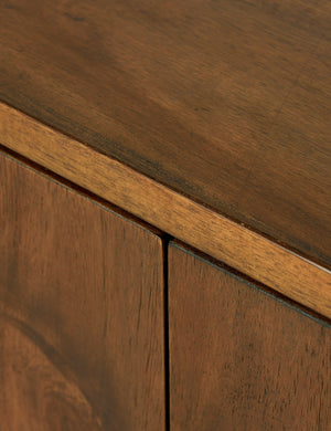 Clad in acacia, the soft lines of the Gilda sideboard are reflected in the curved feet, offering a sturdy design with a gently rounded profile that feels sculptural yet grounded. This sideboard cabinet features four push latch doors, providing ample storage for dishes, linens, and other essentials.