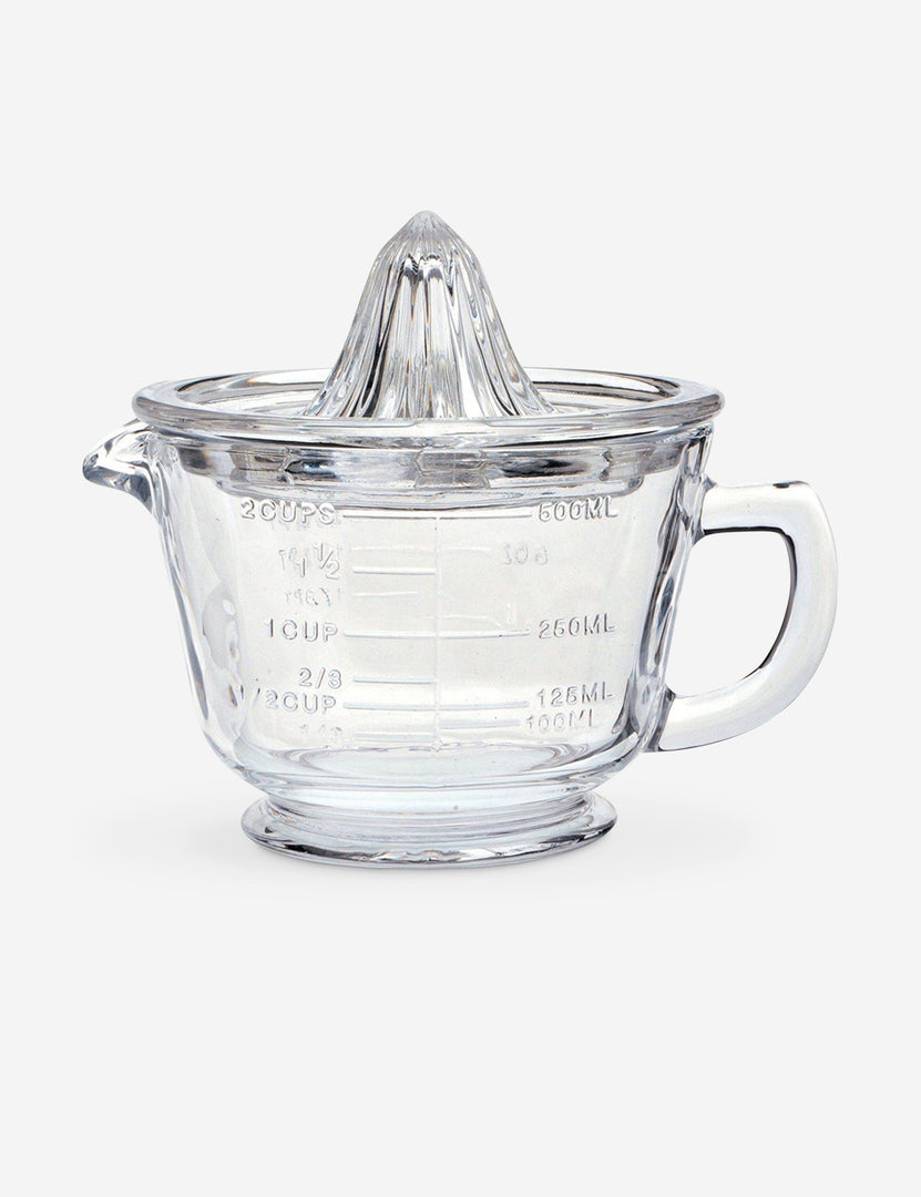 An essential for every kitchen, this durable glass citrus juicer combines simple, stylish looks with efficient design, to make your life in the kitchen a bit easier. The reamer sits atop a deep measuring cup, to collect and pour fresh juice to use in smoothies, as mixers in cocktails, or marinades for dishes like ceviche.