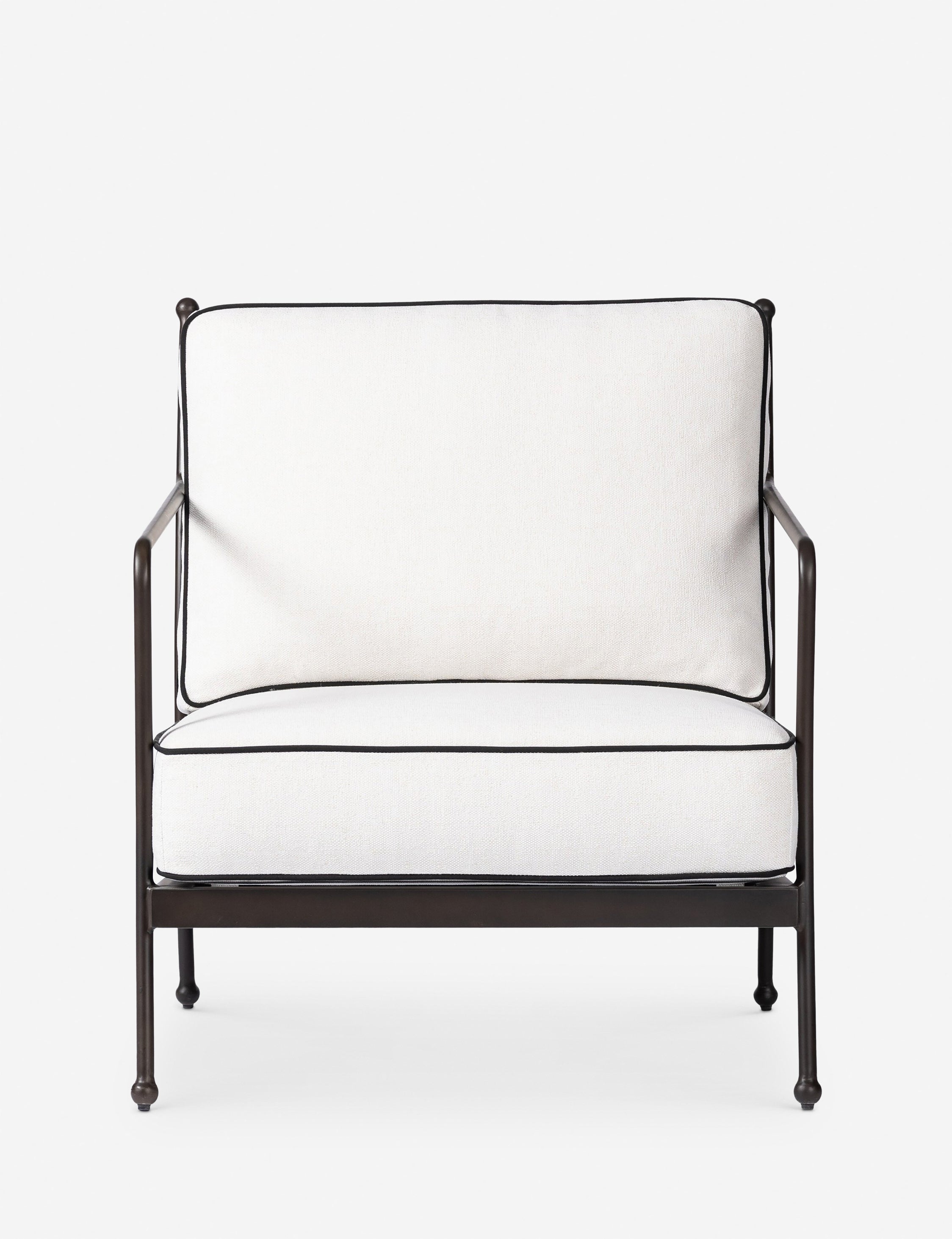 The Gracen accent chair brings a clean shape and soft comfort to your outdoor lounge. Its slender metal frame and vertical slats style a tailored silhouette, while subtle finials add French Deco charm. This outdoor chair is perfect for a polished patio look.