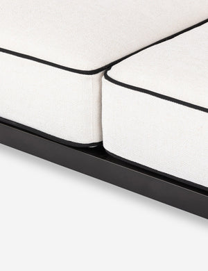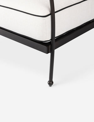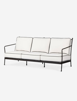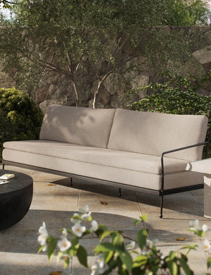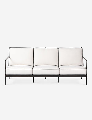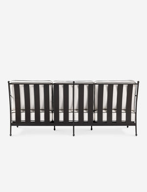 The Gracen sofa brings a clean shape and soft comfort to your outdoor lounge. Its slender metal frame and vertical slats style a tailored silhouette, while subtle finials add French Deco charm. This outdoor sofa creates a refined focal point for an outdoor seating group.