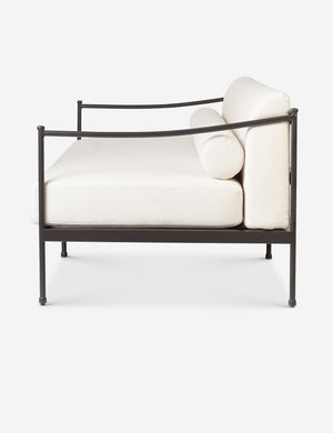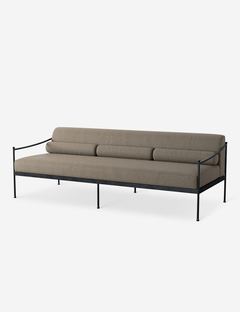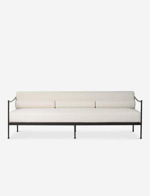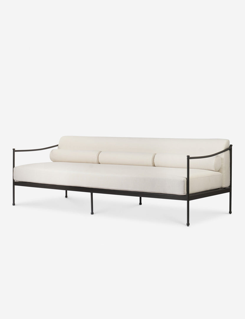 Four Hands brings their exceptional craftsmanship to a timeless collection rooted in Amber Lewis' perennial California style. A streamlined silhouette combines with vintage-inspired elegance in this modern indoor / outdoor sofa. It's perfect for a patio or sunroom, offering upholstered cushions and accent bolsters that make this couch impressively comfortable.