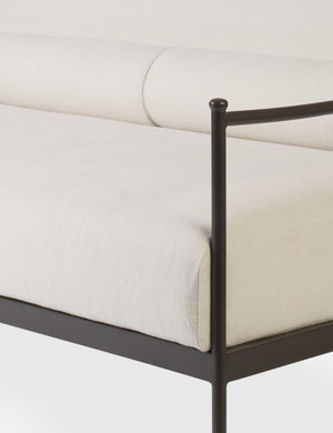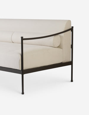 Four Hands brings their exceptional craftsmanship to a timeless collection rooted in Amber Lewis' perennial California style. A streamlined silhouette combines with vintage-inspired elegance in this modern indoor / outdoor sofa. It's perfect for a patio or sunroom, offering upholstered cushions and accent bolsters that make this couch impressively comfortable.