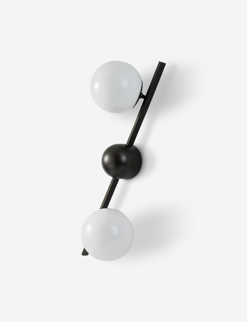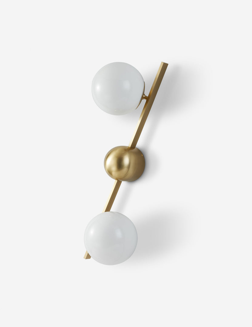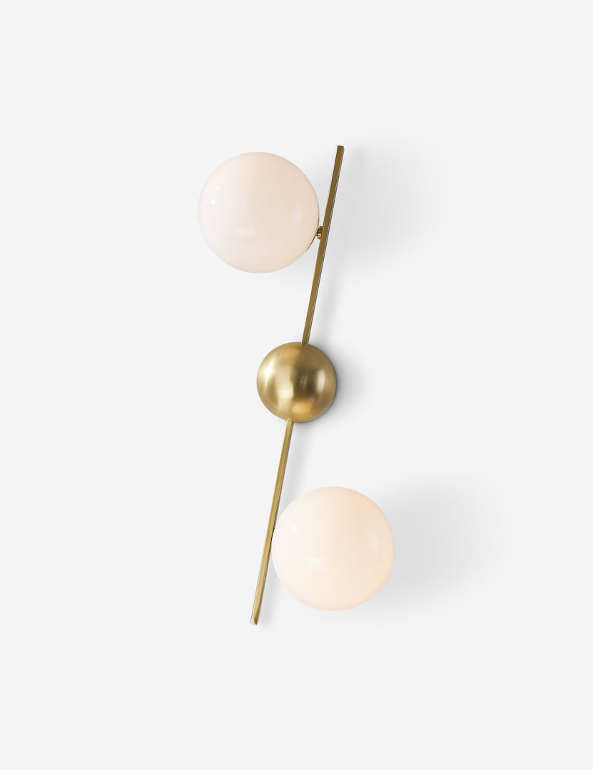 Greta brings a modern edge to sconce lighting. A domed backplate with square arms holds two opal glass globes to offer ample light with a chic edge. The sconce's dynamic design is fully adjustable, allowing the shades to be positioned in line with the backplate, both horizontally and vertically.