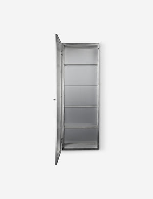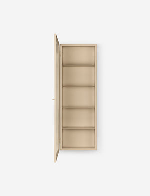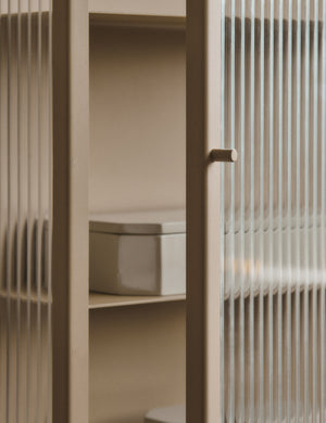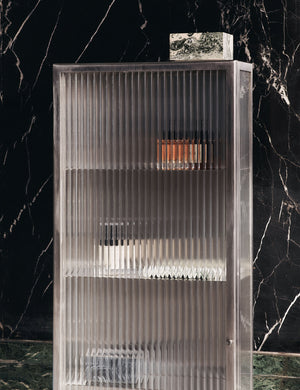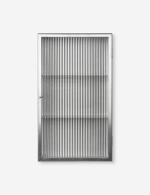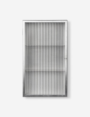 Reeded glass and sleek metal framing bring a modern feel to this wall-mounted cabinet. It’s perfect for storing essentials in a bathroom, entryway, or kitchen while keeping the look clean and elevated. Hang it above a vanity for skincare and fragrances, or in a hallway to keep keys and small objects neatly tucked away.