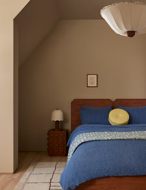 Helmi pairs touches of wicker with a parasol-like shade for an airy, timeless charm. The pendant offers a fresh look overhead with an elegant silhouette that floats over the room. This hanging light is from our exclusive Sarah Sherman Samuel collaboration and features all the trademarks of the designer's warm, edited style.