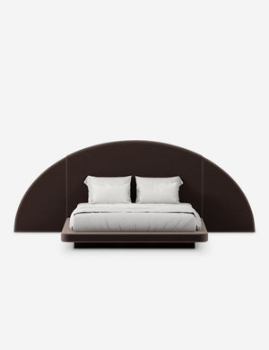 The Hendrix bed makes a bold statement with its sweeping half-moon headboard set against a low-profile base. The scale and silhouette strike a balance of drama and refinement, creating a signature centerpiece to ground your room. With bespoke upholstery, this bed frame can be tailored to your space.