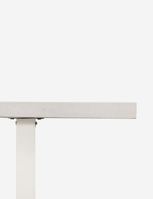Add this dining bench to the mix for modern style indoors or out. Featuring a lava stone top and angular iron legs, this dining table bench has a minimalistic look with an industrial edge. Style this bench at your outdoor table, in the garden, or wherever you need sturdy seating or an extra spot for plants and decor.