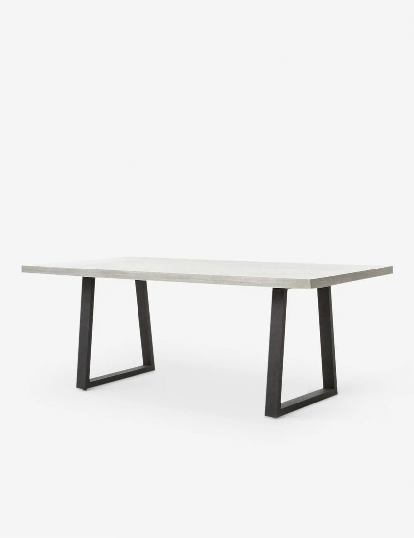 For modern style indoors or out, add this rectangular dining table to the mix. Featuring a lava stone top and sturdy black iron base, it's a minimalistic look with industrial edge.