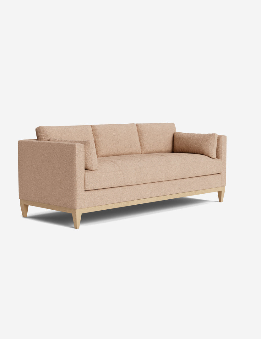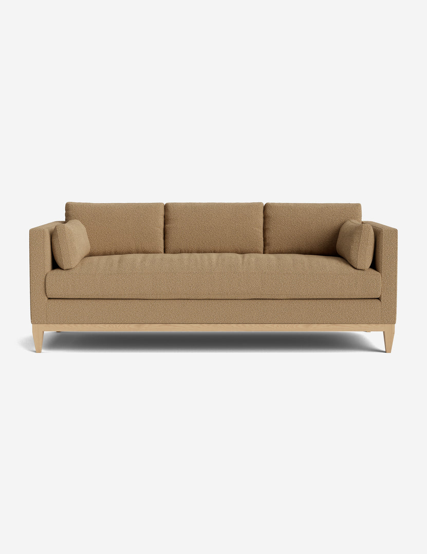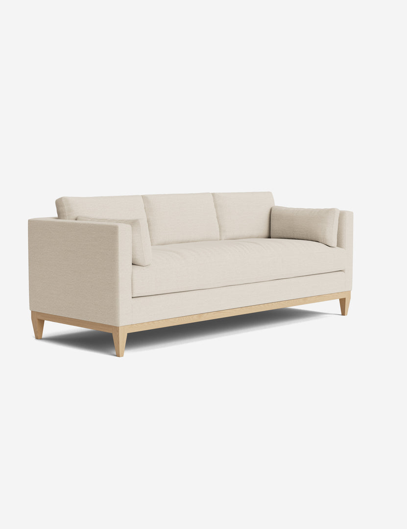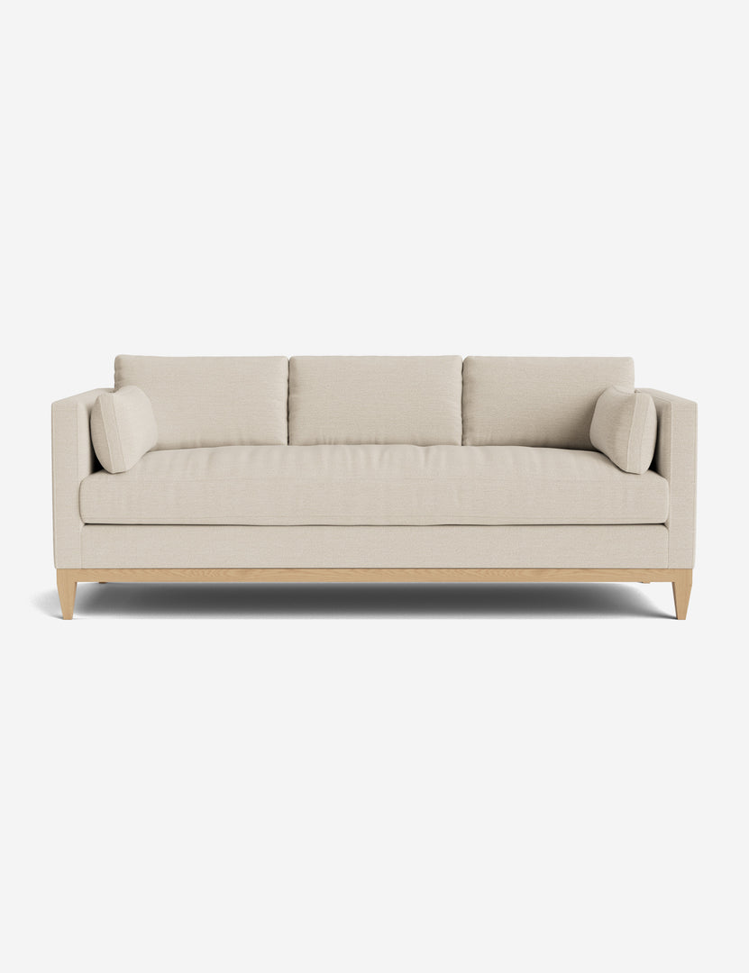 The Hornsby sofa styles a timeless look set for transitional appeal. This plush, loose-back design is neatly tailored in velvet, offering a luxurious seat with a relaxed feel. A bare wood base lifts the couch off the ground for an open silhouette that feels light and modern in the room.