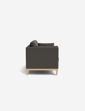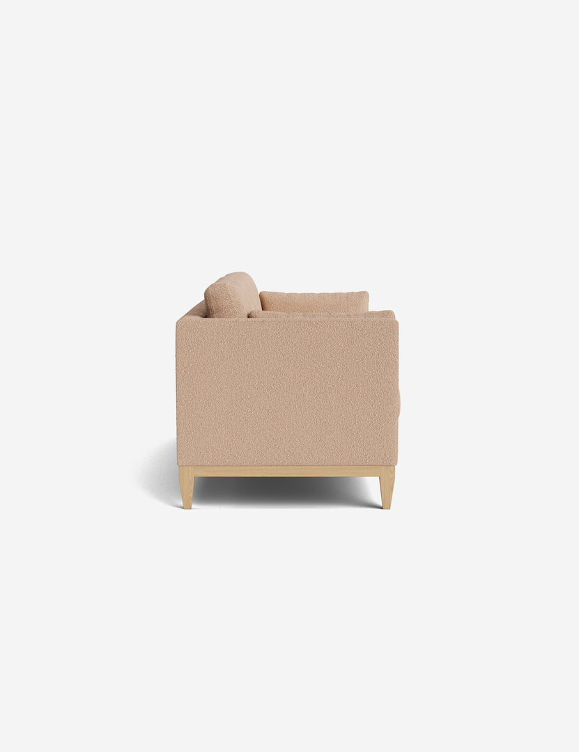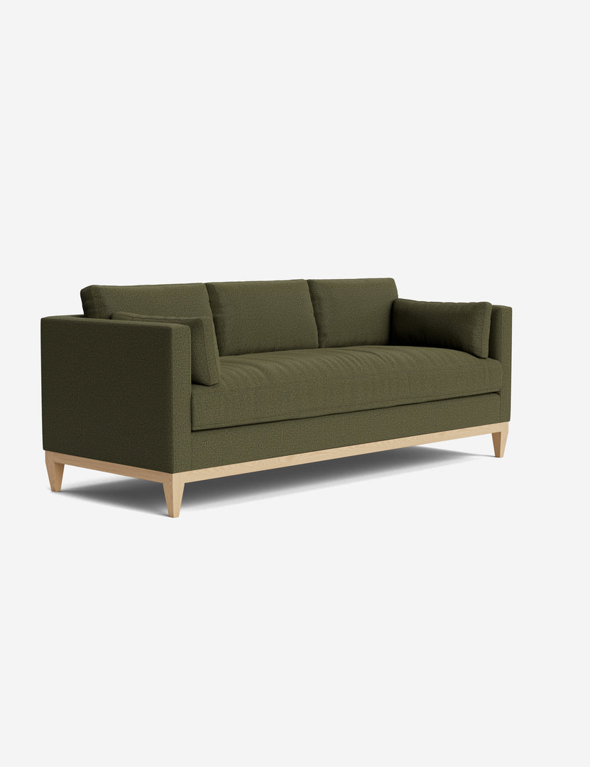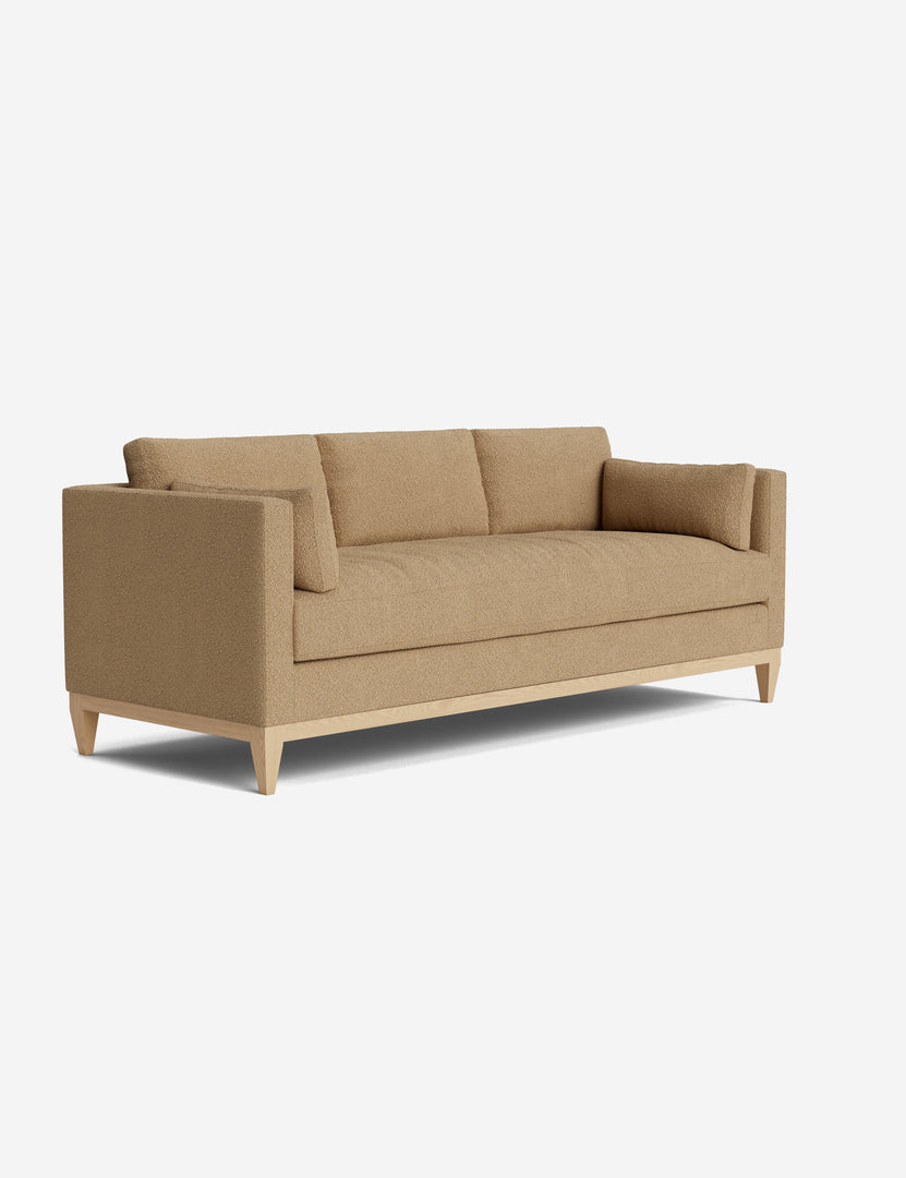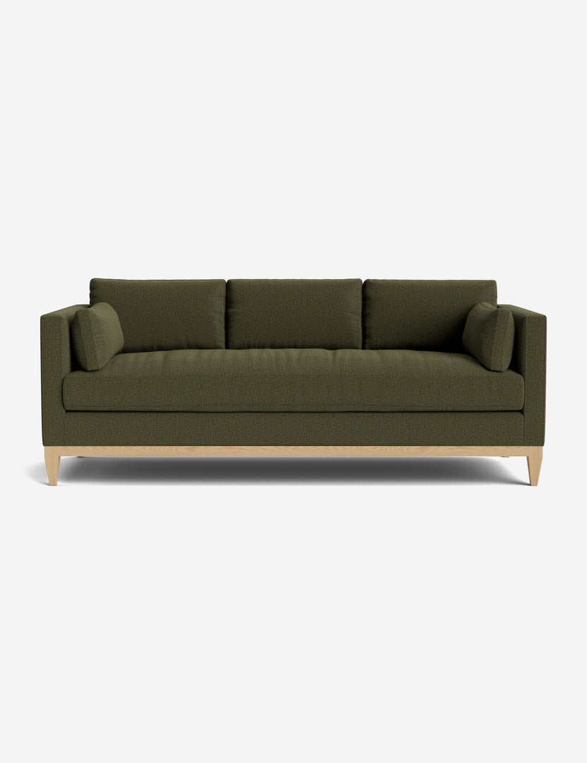 The Hornsby sofa styles a timeless look set for transitional appeal. This plush, loose-back design is neatly tailored in velvet, offering a luxurious seat with a relaxed feel. A bare wood base lifts the couch off the ground for an open silhouette that feels light and modern in the room.