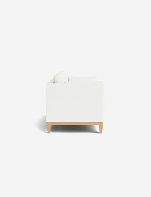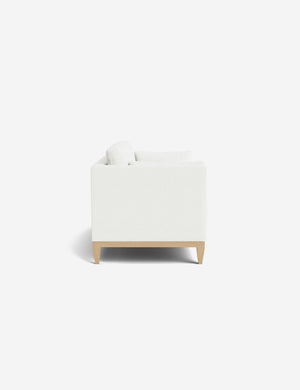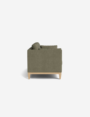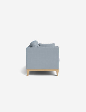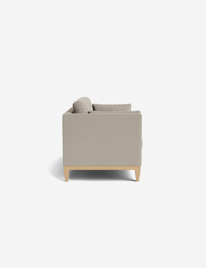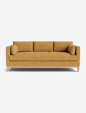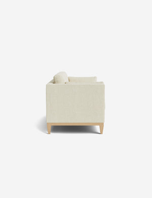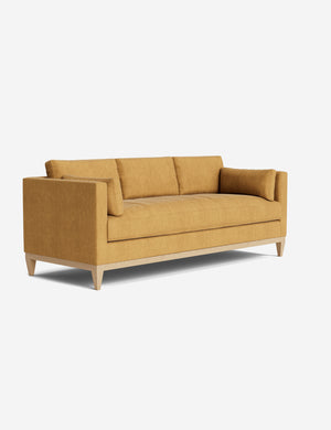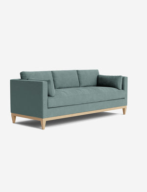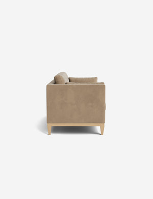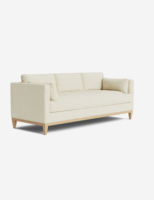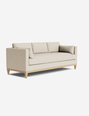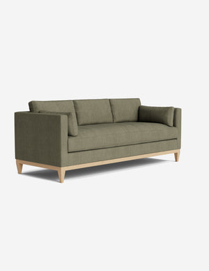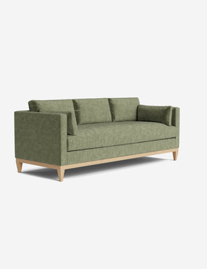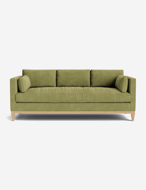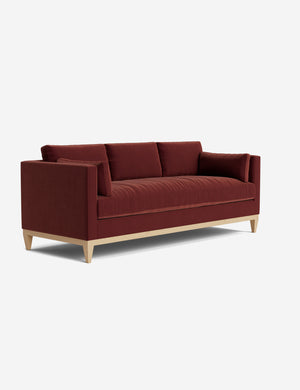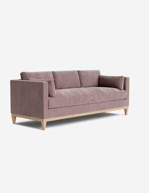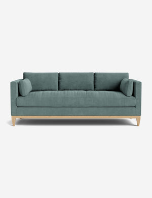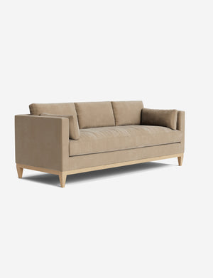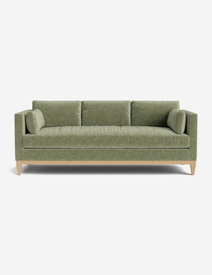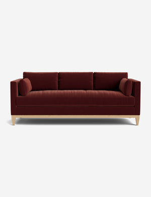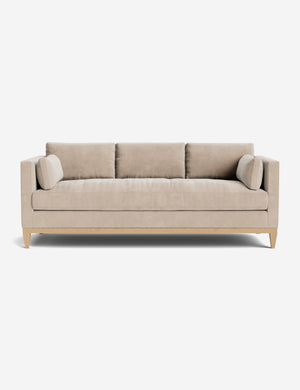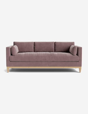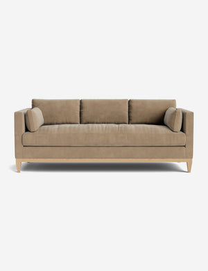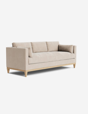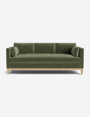 The Hornsby sofa styles a timeless look set for transitional appeal. This plush, loose-back design is neatly tailored in velvet, offering a luxurious seat with a relaxed feel. A bare wood base lifts the couch off the ground for an open silhouette that feels light and modern in the room.