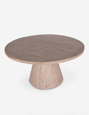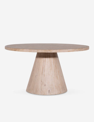 The Horton dining table inspires striking elemental appeal with its cone-shaped pedestal base and crisp round top. The clean silhouette and light wood finish offer a versatile table, offering sophistication with a modern edge to your dining space.
