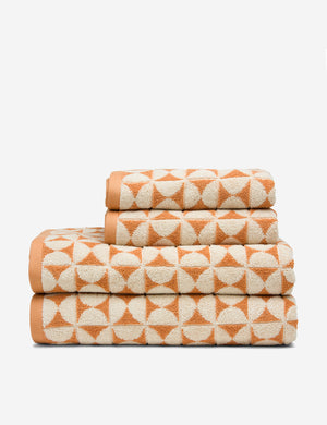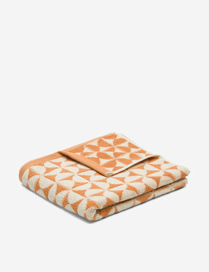 House No. 23's towels, bedding, and home linens are woven from the highest quality organic cotton and natural fibers for unparalleled softness. A half-moon design adorns both sides of this hand towel in a vibrant, alternating pattern. The natural fibers are fast-drying and practical, while the two-sided design can bring visual flair to a bathroom or kitchen.