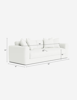 From a cozy family room to a casually modern lounge, the Hughes sofa is set for chic comfort. The boxy silhouette offers an inviting seat that styles seamlessly into your space. Tailored scatter pillows complete the look, elevating this versatile couch.