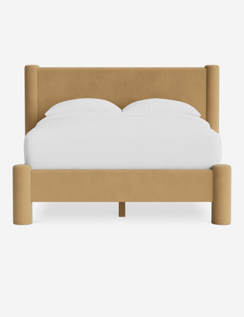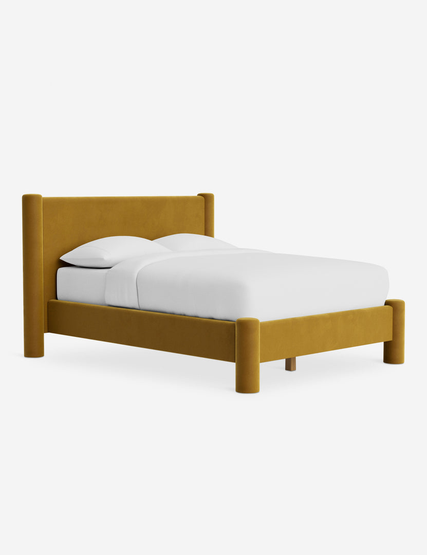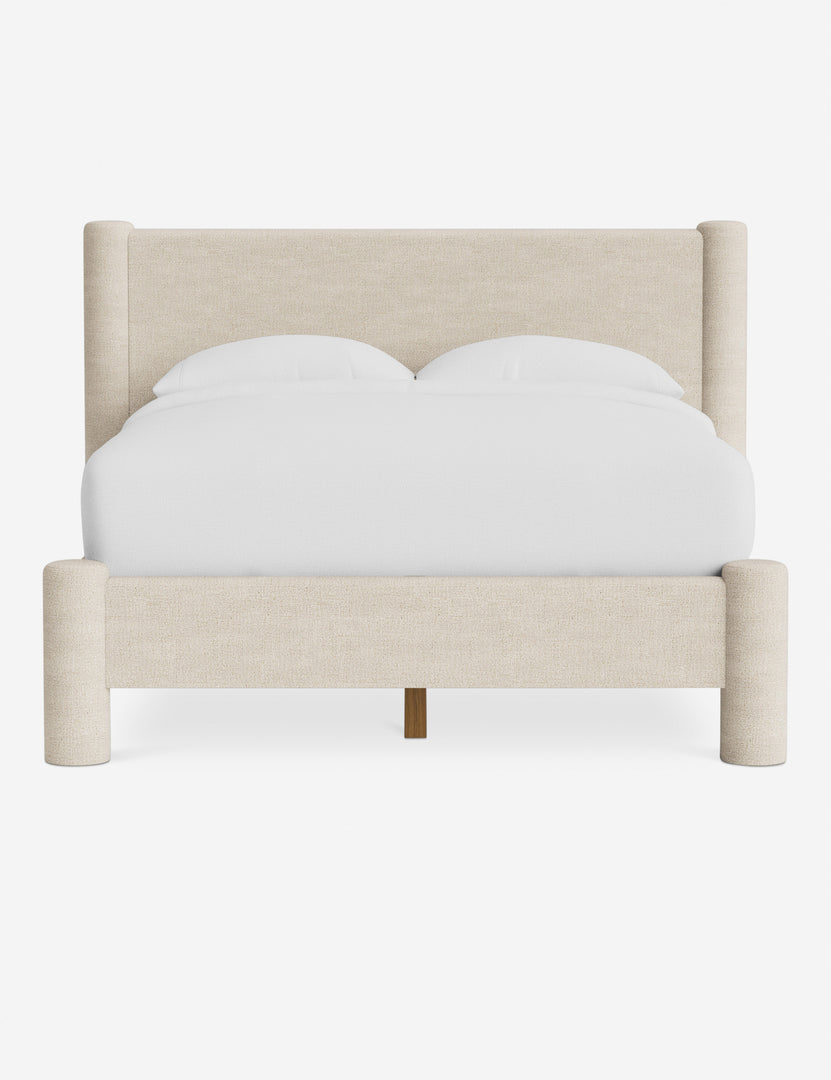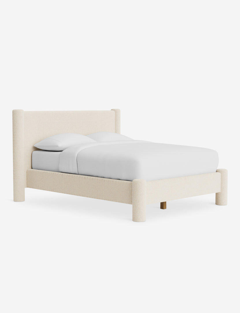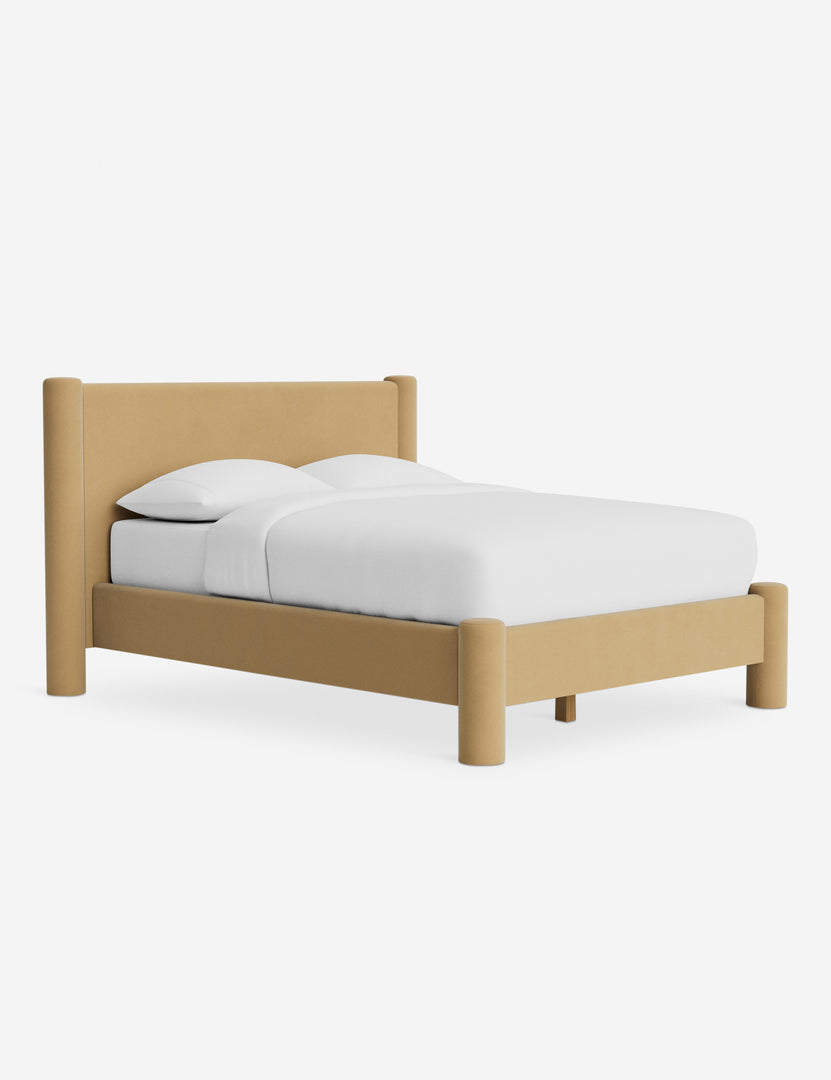 Soft, rounded edges and a streamlined design make this bed into a statement-making retreat. The oversized headboard and fully-upholstered bed frame give it an evolved look. This piece is from our exclusive Sarah Sherman Samuel collaboration and features all the trademarks of her warm, edited style.