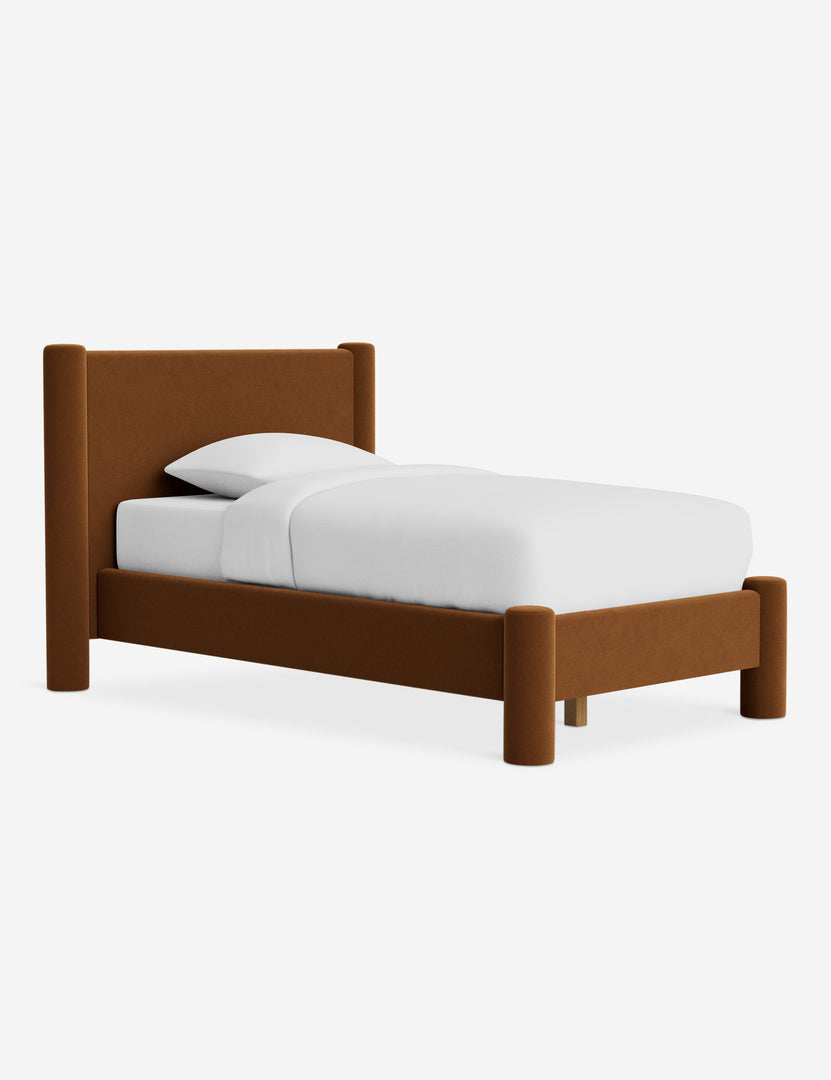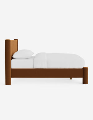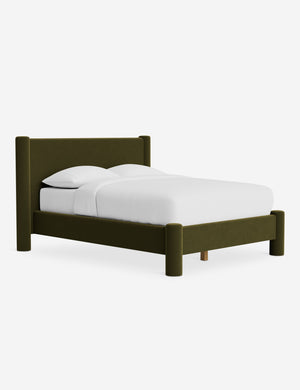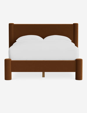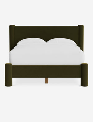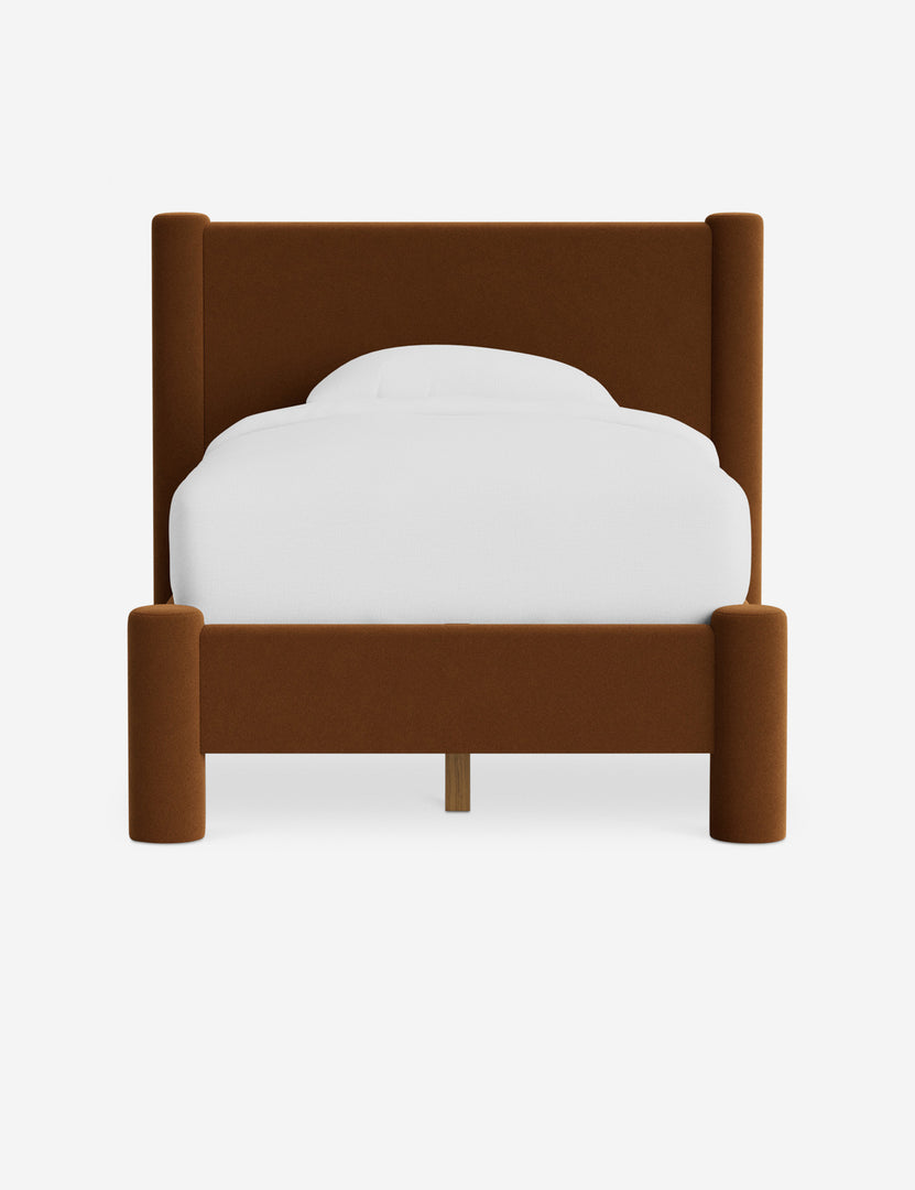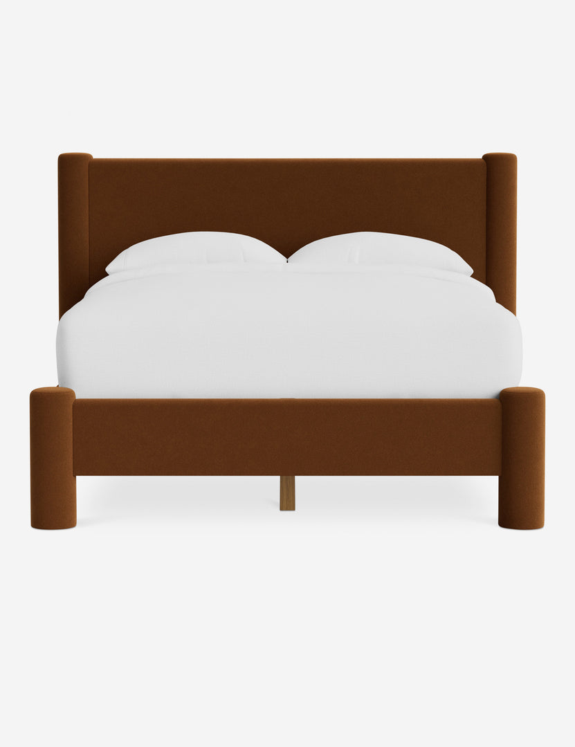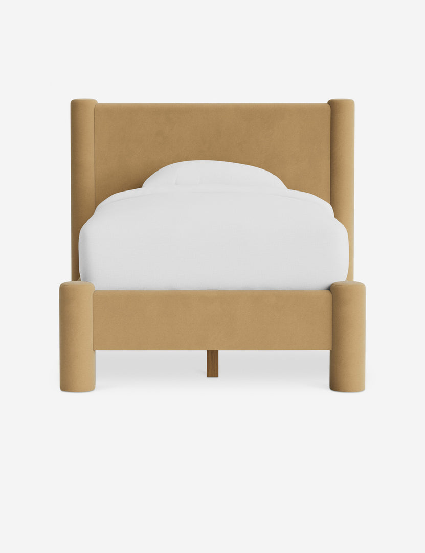 Soft, rounded edges and a streamlined design make this bed into a statement-making retreat. The oversized headboard and fully-upholstered bed frame give it an evolved look. This piece is from our exclusive Sarah Sherman Samuel collaboration and features all the trademarks of her warm, edited style.