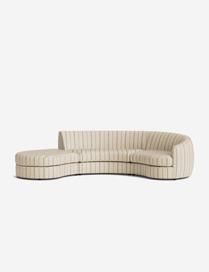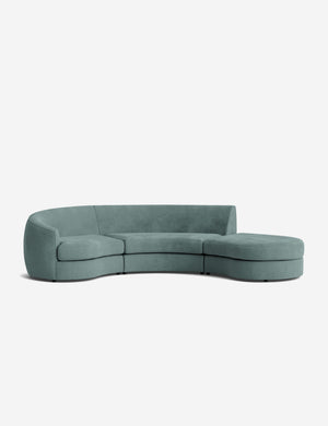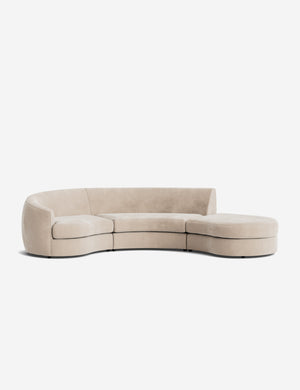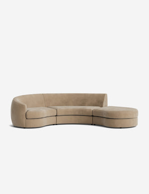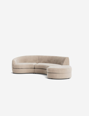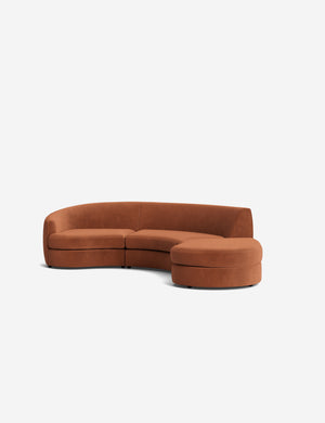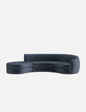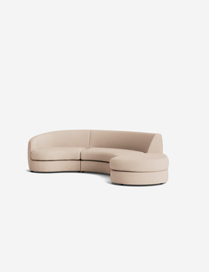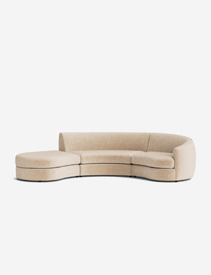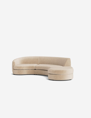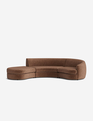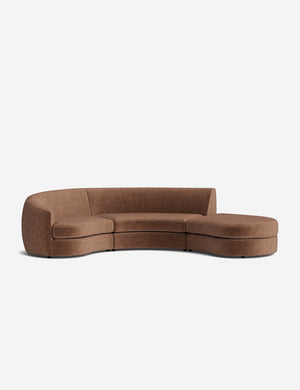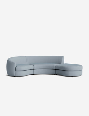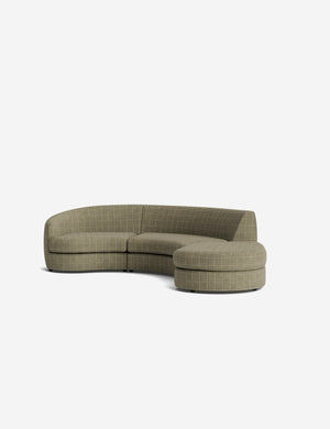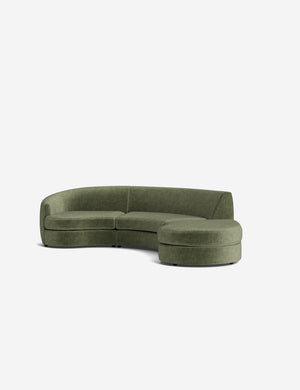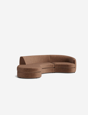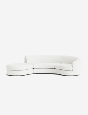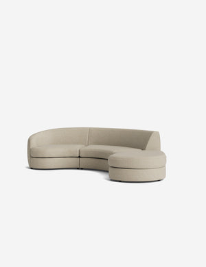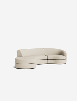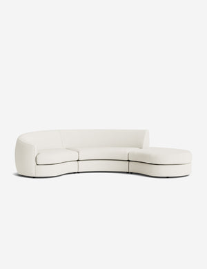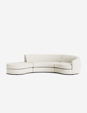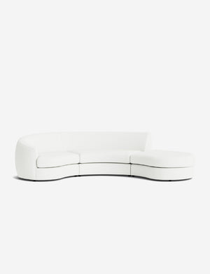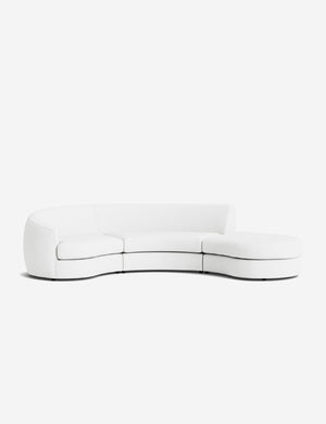 The Imada sectional makes a soft statement through its fluid lines and sculptural form. The tight back and rounded lines create a cocooning shape that invites conversation and lounging alike. With its artful balance of comfort and form, this chaise sectional is perfect for stretching out while keeping the look polished.