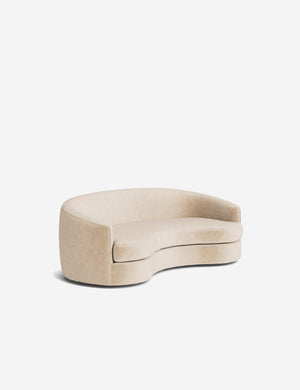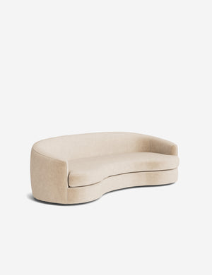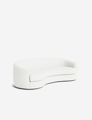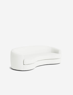 The Imada sofa makes a soft statement through its fluid lines and sculptural form. The tight back and rounded lines create a cocooning shape that invites conversation and lounging alike. With its artful balance of comfort and form, this modern sofa is made to anchor your space with graceful impact.