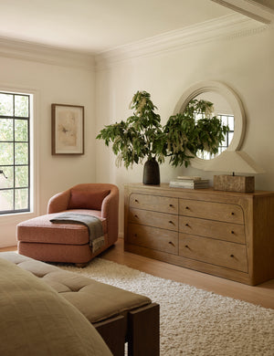 DISC Interiors emphasizes people and place in their designs, creating spaces that find balance and impact through thoughtful curation. They bring that same philosophy to this collection with pieces that invite you to live in comfort and love your surroundings. The Ingmar chaise offers a fluid silhouette with an extended seat and barrel-style back. This cozy chaise is the perfect place for a long read or a short nap.
