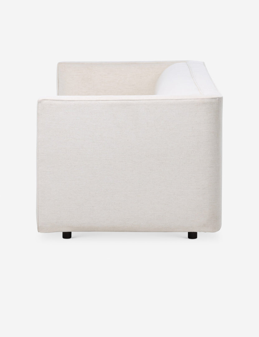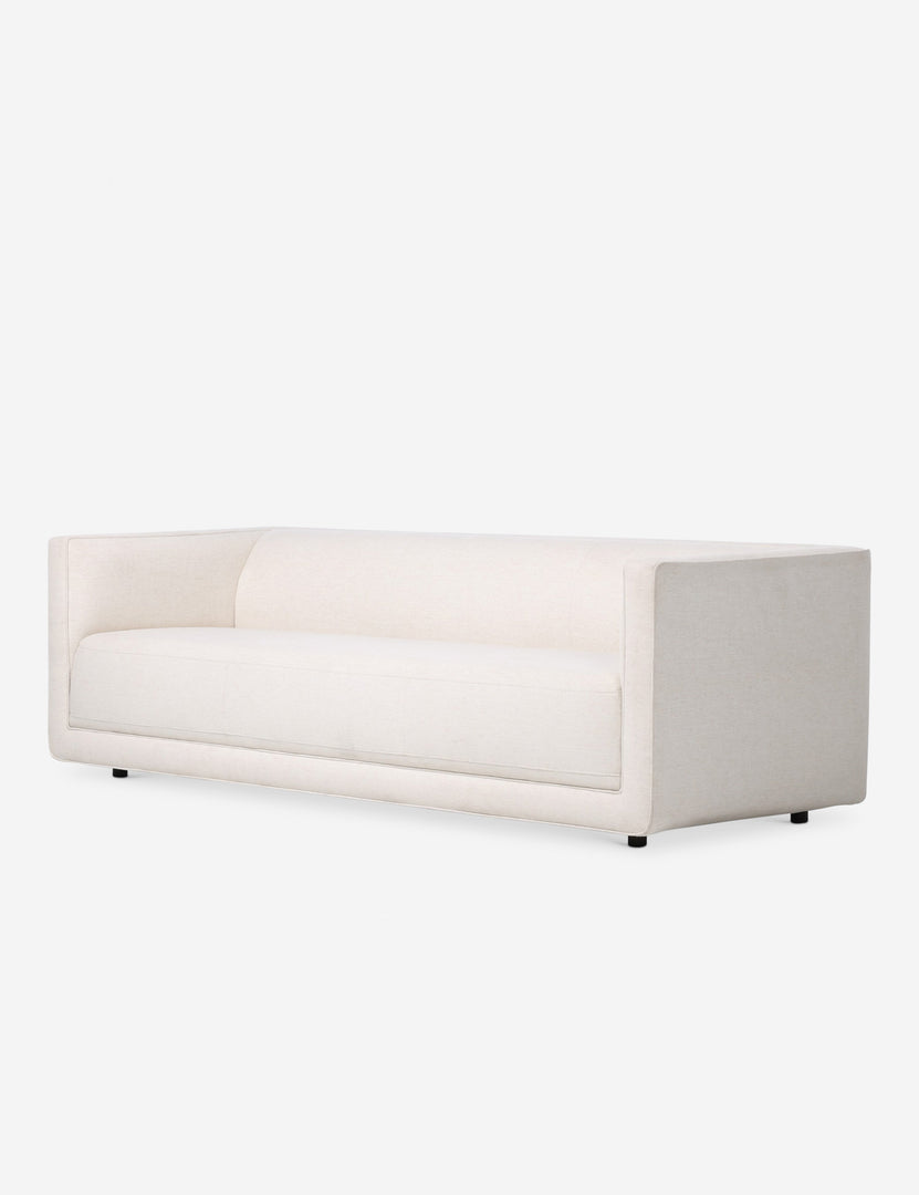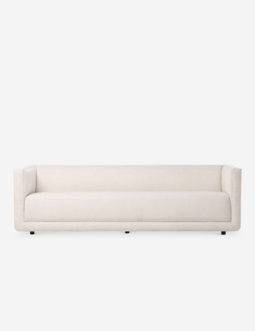 Low-slung and clean-lined, this sofa makes a statement in subtlety. Blind stitching and expert tailoring elevate the fixed couch seat, which gives the illusion of a plush, loose cushion. A piped channel detail on the arms finishes the heritage-inspired frame with a modern update on classic form.