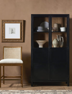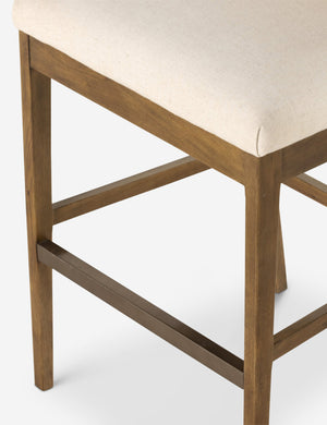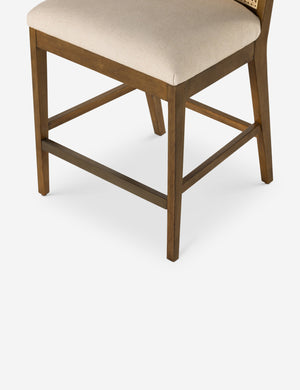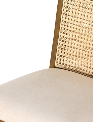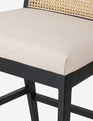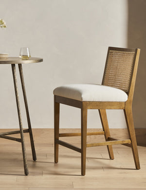 Timeless details like rattan caning and a textured seat cushion give this bar chair a retro vibe we love. The pared-down design and a kick plate finish this stool for dynamic appeal.