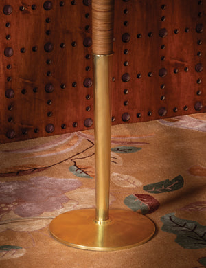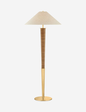 The Jonadi floor lamp delivers standout texture with a thoroughly refined silhouette. A wide linen shade pairs with a rattan-wrapped base in antique brass, creating a warm mix of materials with modern appeal. We love this lamp for anchoring a corner in a relaxed living room or bedroom.