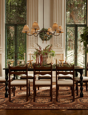 The Jordan chandelier lets you make lighting your signature moment. Its pleated shades feature a charming floral print for an unexpected pop of pattern in the room. This large chandelier's graceful lines complement the whimsy of the shades for effortless elegance overhead.