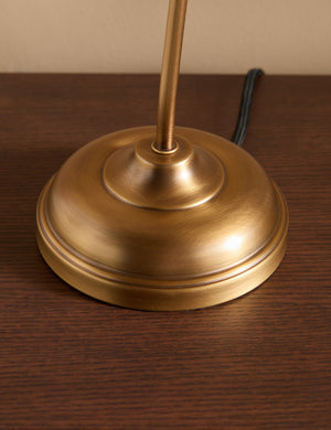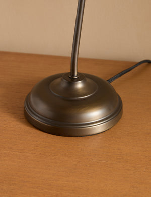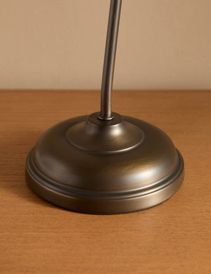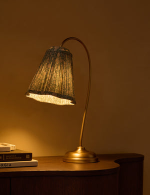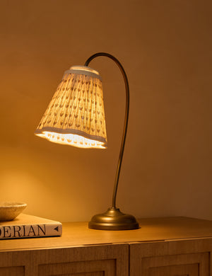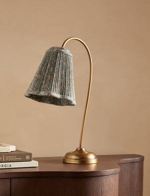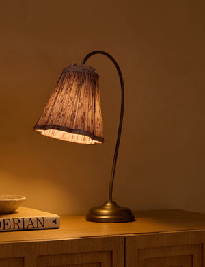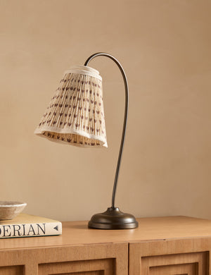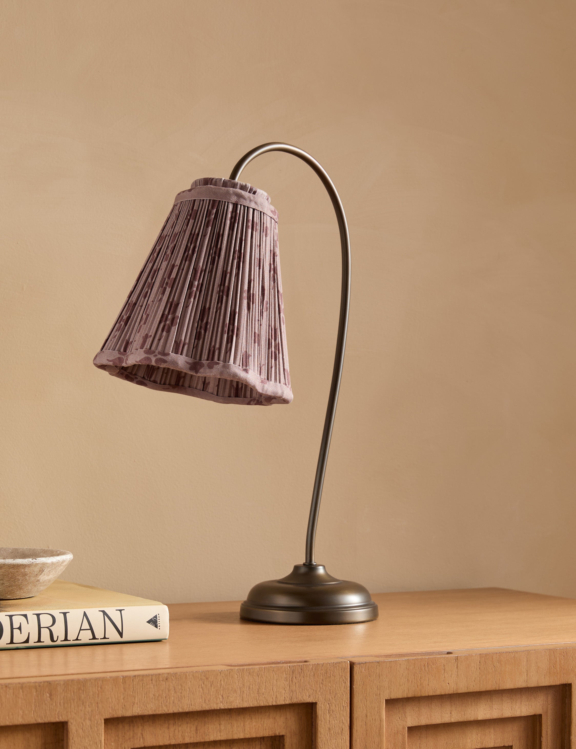 The Jordan desk lamp lets you make lighting your signature moment. This lamp's gooseneck design creates an elegant silhouette for task light at your desk or countertop. The pleated shade features a charming floral print, adding an unexpected pop of pattern to the room.