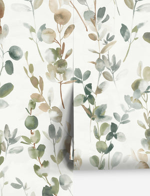 Add a touch of refinement to your look with this botanical wallpaper. Trailing eucalyptus sprigs offer lush greens and silvery undertones for fresh sophistication. Style this wallpaper in your entryway or a sunlit study to reflect the beauty of the natural world.