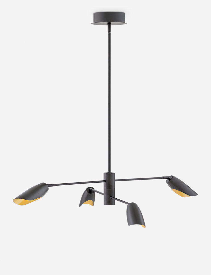 Jurado brings kinetic artistry to lighting with its dynamic design. The chandelier's pivoting arms and scoop shades exude a sculptural drama set for minimalist appeal. This modern chandelier will transform your lounge with artful impact overhead.