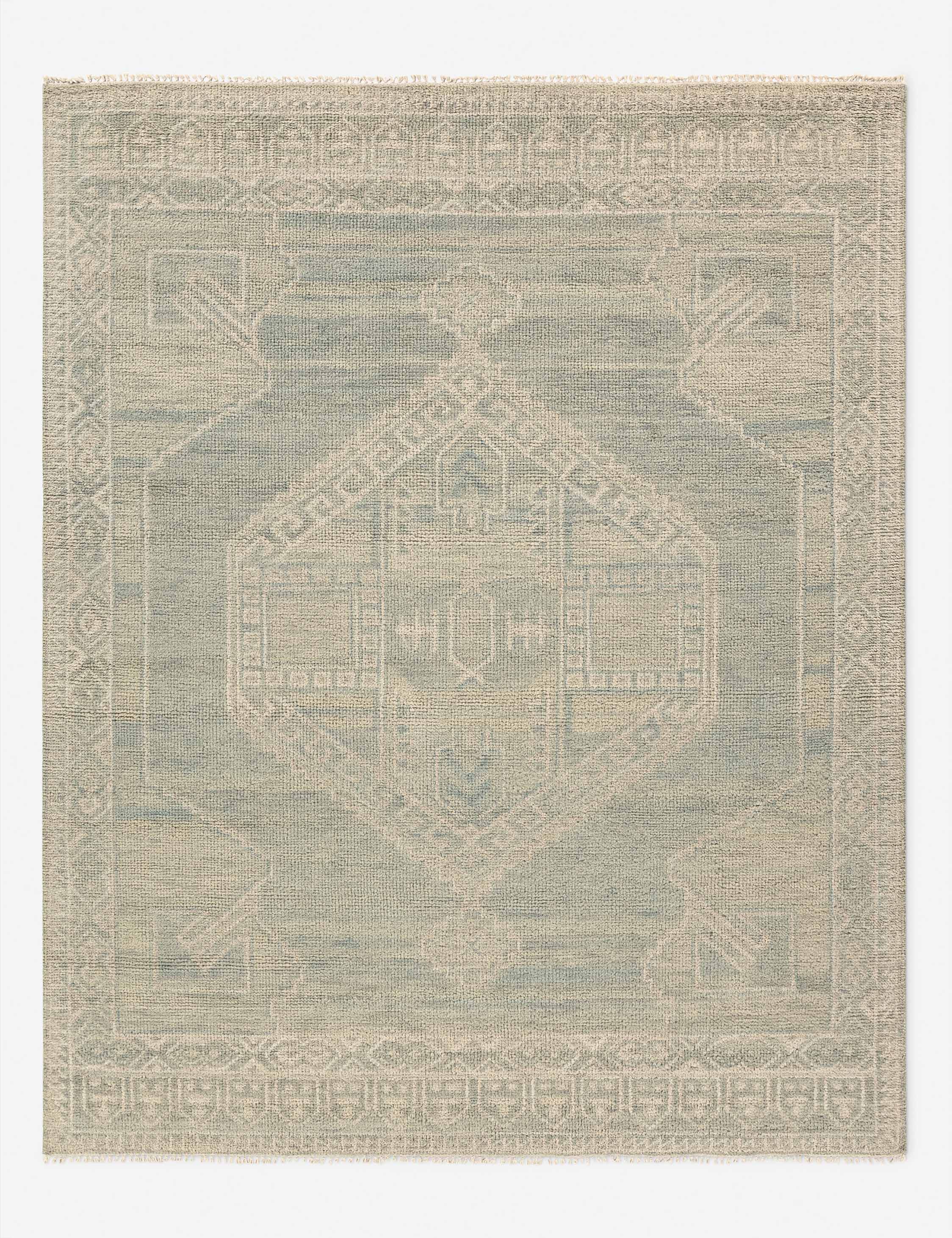 The Kahlo rug is inspired by the traditional Kars rugs of Northeastern Turkey, tailored for modern decor with simplified motifs in a tonal palette. Each wool rug is meticulously hand-knotted for an heirloom-quality foundation ready for a livable home design. The durable tread and timeless pattern are set for lasting elegance in any space.