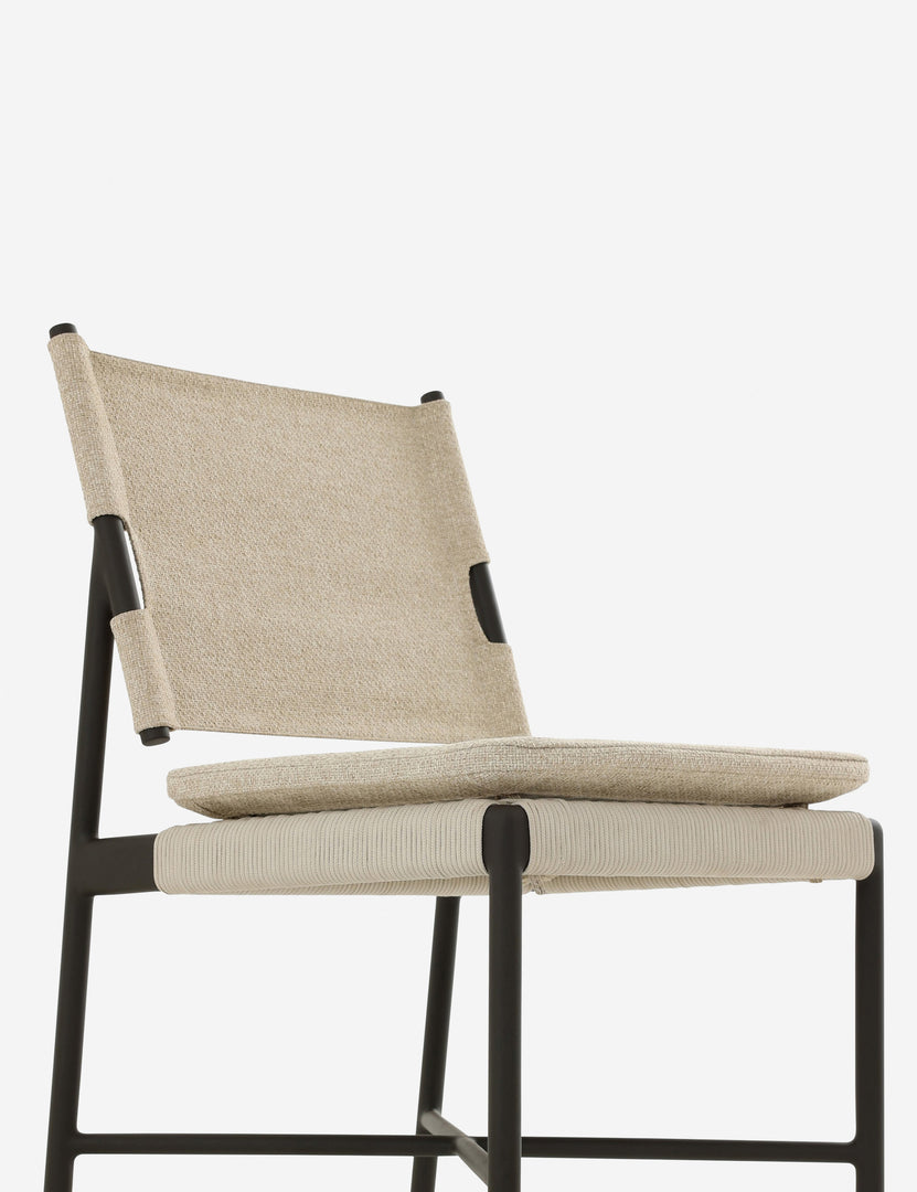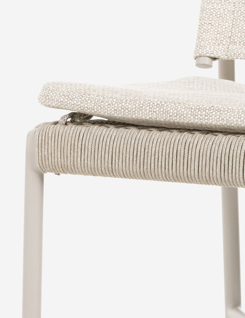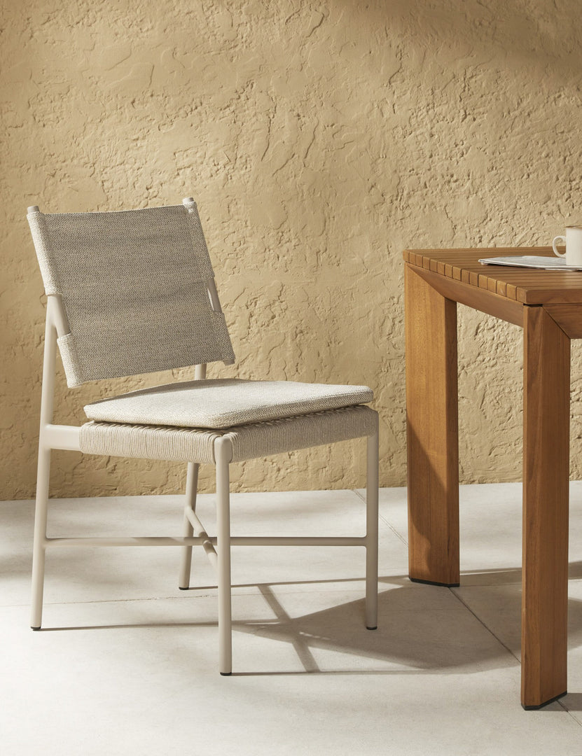 Simply sophisticated—this lightweight dining chair brings an elevating touch to your table. The slim metal frame is wrapped with all-weather wicker and finished with a performance upholstered cushion and back, styling the perfect dining seat for al fresco elegance.