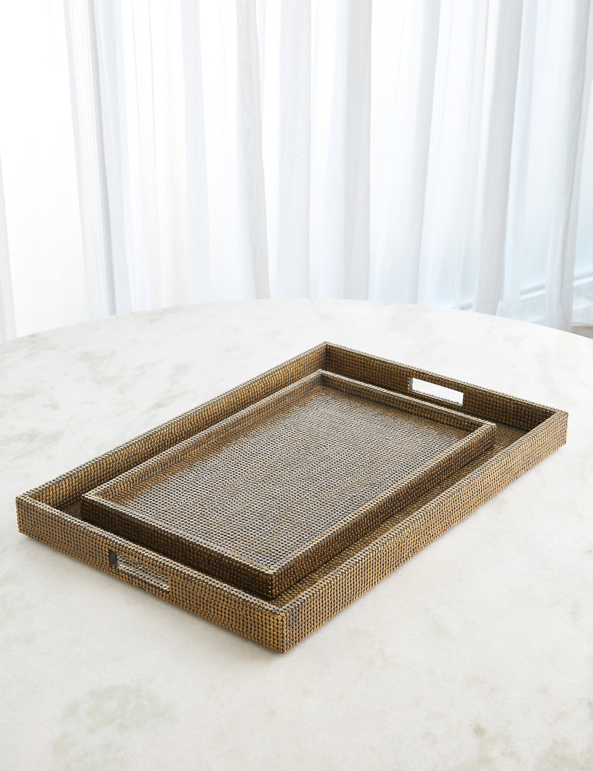 With hammered studs and a warm brass finish, this handmade tray strikes a perfect balance between craftsmanship and polish. Use it to corral barware or add structure to a layered vignette.