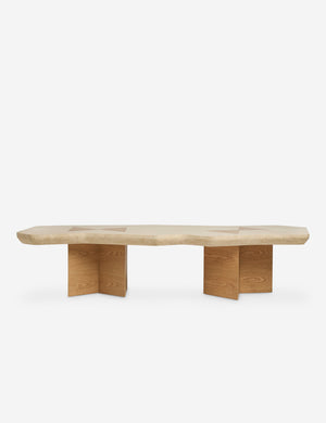 The Kanto coffee table plays with modern form and material contrast. Angular legs showcase a beautiful wood grain beneath a travertine-style top, where organic edges and an inlay add texture and warmth. This coffee table is from our exclusive Sarah Sherman Samuel collaboration and features all the trademarks of her warm, edited style.