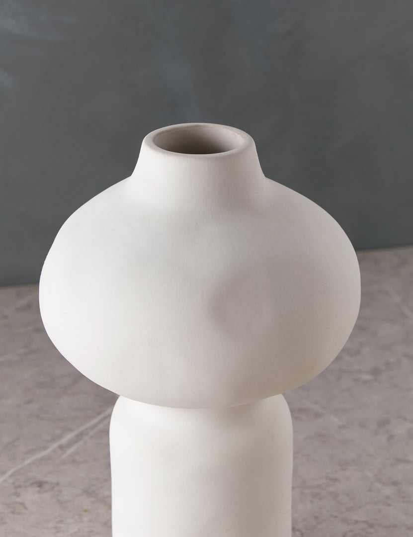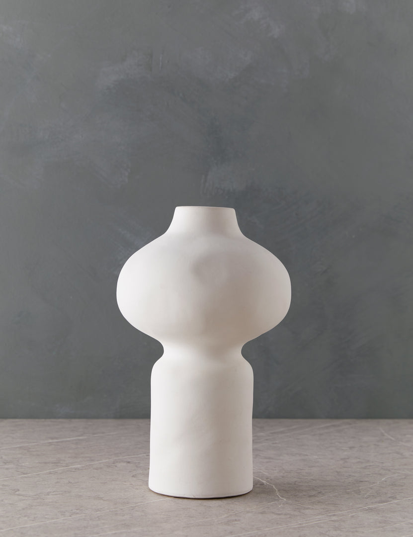 Add a touch of drama to your tabletop with the shapely silhouette of our Kareem vase. Whether filled with a fresh floral bouquet or adding sculptural appeal to your console, this vase is a subtle stunner. The white finish offers a versatile fit for transitional and modern decor.