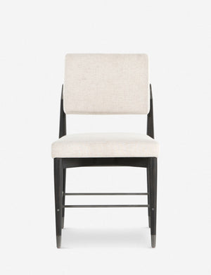With an airy frame and plush seat and back, this dining chair offers a striking silhouette for a polished dining space. The black wash finish and light woven upholstery complement the design with a striking visual contrast that sets off this dining room chair with a transitional style.
