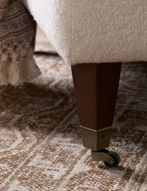 Four Hands brings their exceptional craftsmanship to a timeless collection rooted in Amber Lewis' perennial California style. Cloud-like in silhouette and comfort, this modern chaise is designed with an extended seat for stretching out in style. Trim upholstery and brass casters on the front legs lend a tailored detail to set off this deep lounger's vintage-meets-modern design.