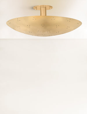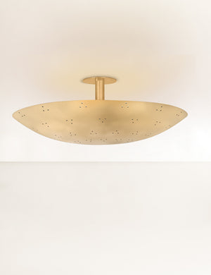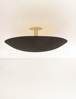 Low-profile yet design-forward, the Kerris flush mount is all about minimalist impact. The disc-like shade features perforated detailing for a dazzling effect when lit. We love this ceiling light for adding quiet drama to a hallway, entry, or any room that calls for a modern edge.