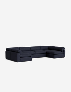 Our Kingaby sectional blends relaxed comfort with bold, rounded lines for a modern take on lounge seating. Plush cushions and generous proportions invite you to sink in, while the U-shaped build frames the room with symmetry. A true anchor piece, this modular sectional is made for gathering, hosting, and lounging with ease.
