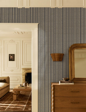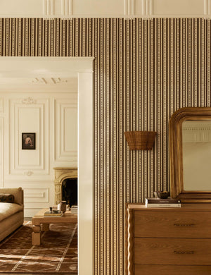 Our Kirby wallpaper offers texture with a modern edge. The stripe-and-dot motif makes for a visually striking addition in its high-contrast palette. Grasscloth wallpaper is perfect for living rooms, bedrooms, or dining spaces where it can imbue depth with warmth.