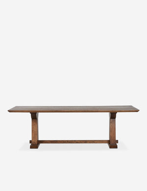 With seating for ten, this wood dining table is set for every occasion. It features a trestle silhouette for timeless appeal and is crafted from solid oak to create a dinner table you'll be happy to gather around for years to come.